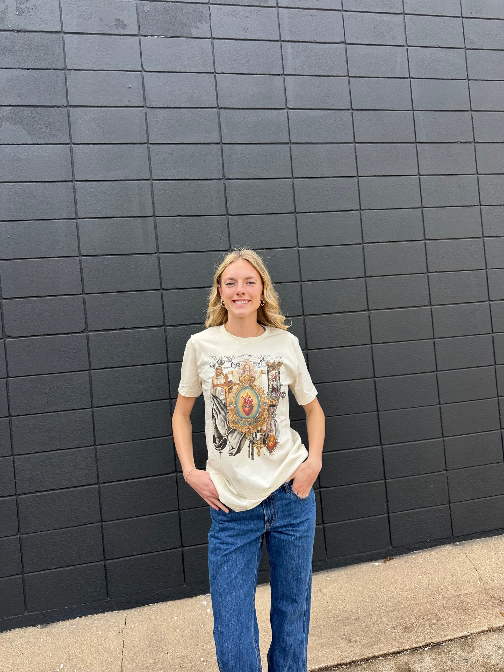The Gothic Collage Tee is perfect for upscaling any causal outfit!