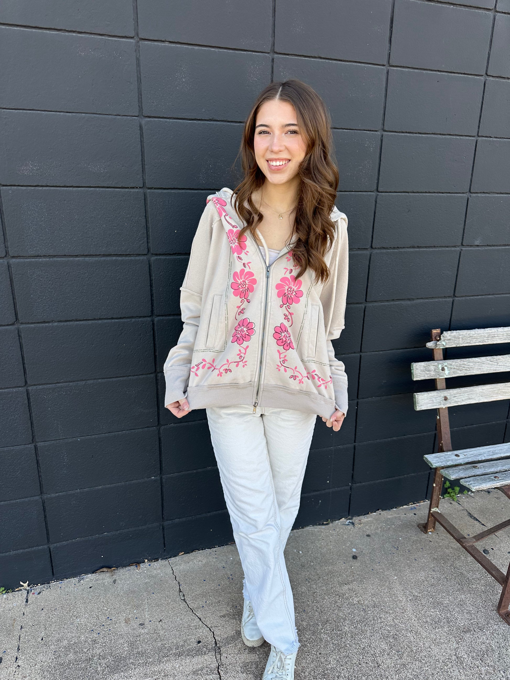 The LS Embrd Frnt Hoodie is the cutest accessory to throw on!